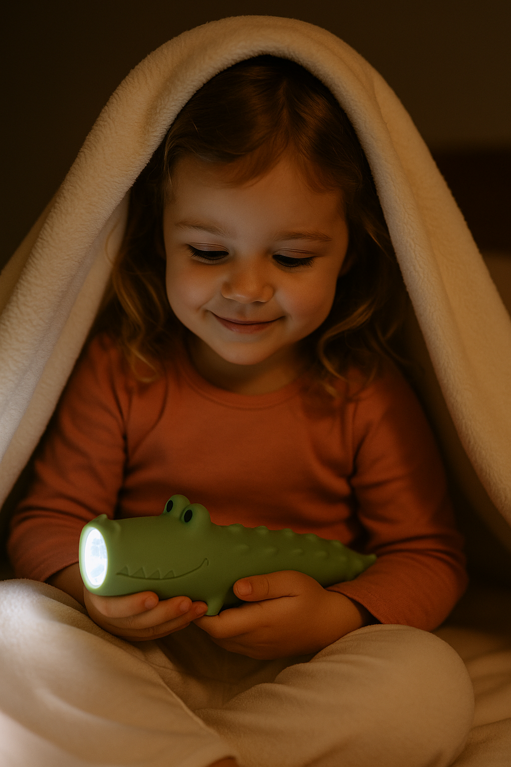 Ob beim Schlafen oder beim Spielen in dunklen Ecken – der Alligator-Leuchtfreund ist immer dabei und gibt meinem Sohn Sicherheit und Mut. - Sarina K. aus Mönchengladbach