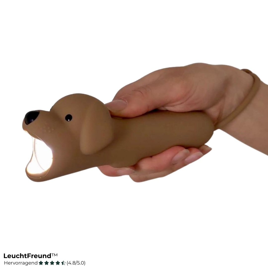 Normale Nachtlichter bleiben an der Steckdose. Normale Taschenlampen haben ein langweiliges Design und benötigen Batterien. Der LeuchtFreund™ geht mit.