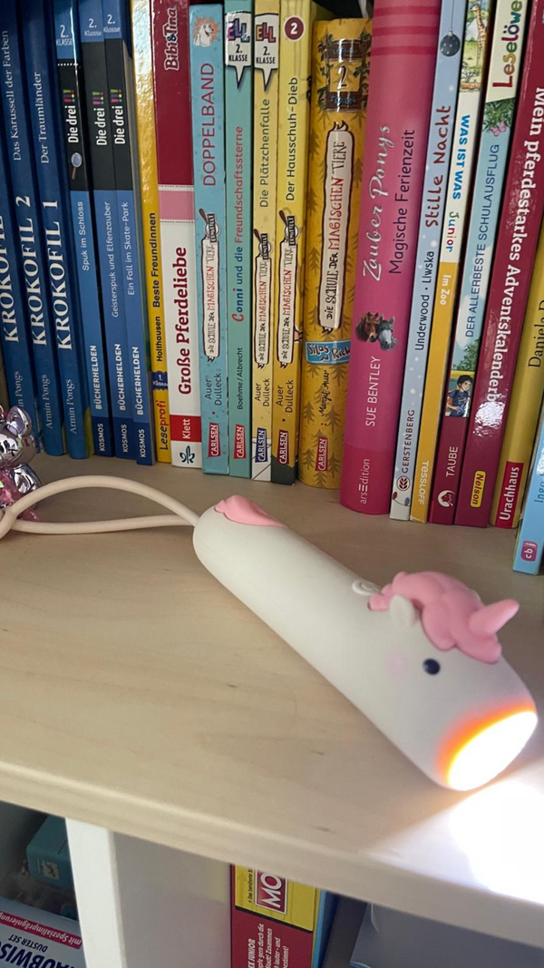 Meine Tochter nimmt ihr Einhorn-Licht mit ins Zelt, unter die Decke und sogar in den Garten – es ist ihr ständiger, unverzichtbarer Spiel- und Einschlafbegleiter. - Caro S. aus Fulda