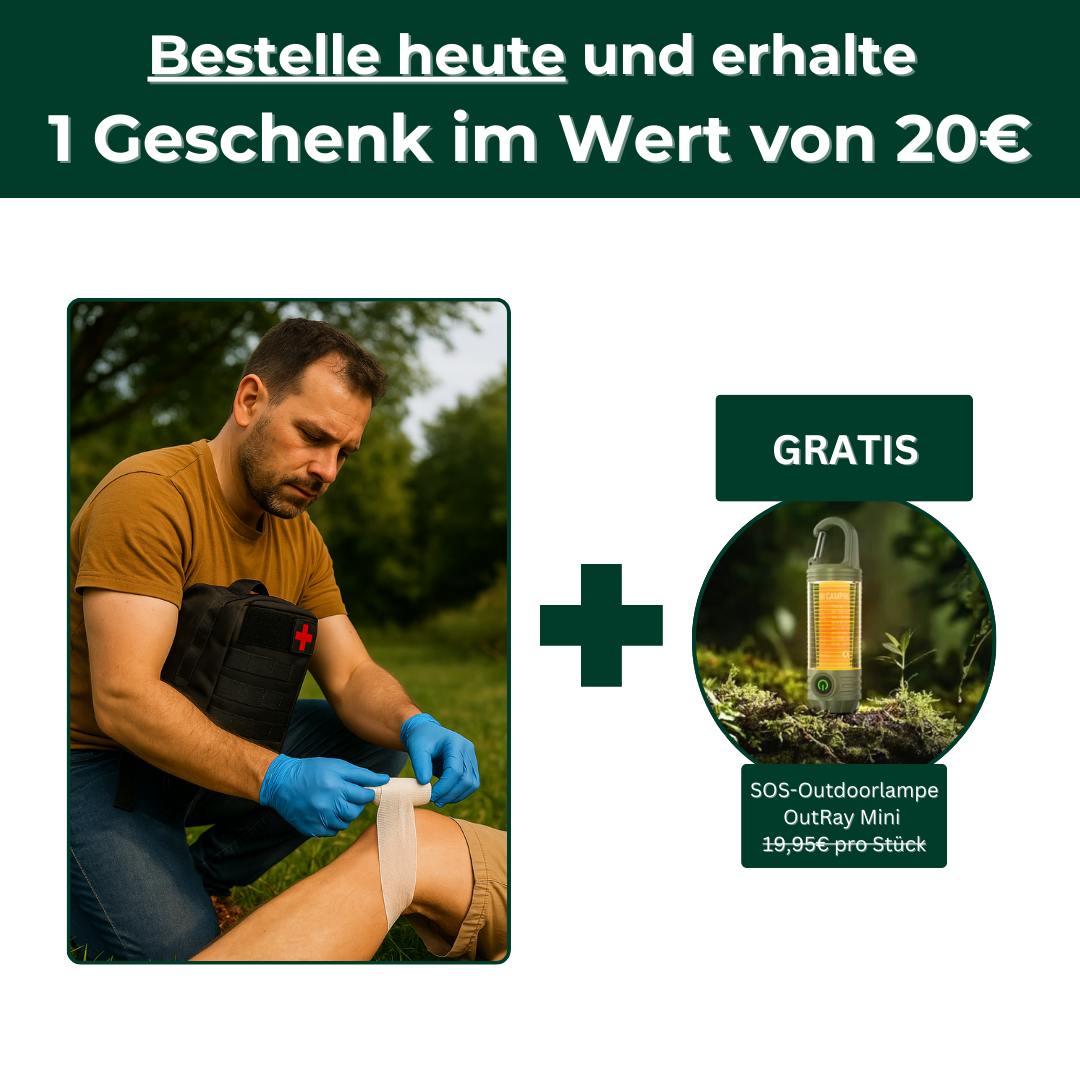 Es ist eine 24-in-1-Lösung: Erste Hilfe + Überleben + Tools – getestet von Survival-Experten. Kein Notfall-Minimalismus, sondern echte Ausrüstung.